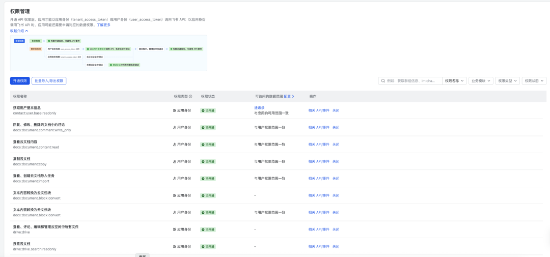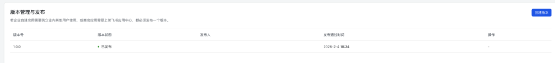 注意:开通权限后,需点击页面上方的 “创建版本” 并 “发布”,权限变更才能生效。
