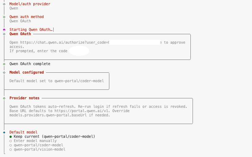 - 鉴权流程:由于Codespaces运行在云端容器中,无法直接唤起本地浏览器。终端会生成一个鉴权URL,用户需手动复制该链接到本地浏览器打开,完成登录授权后,OpenClaw即可获取API Key。