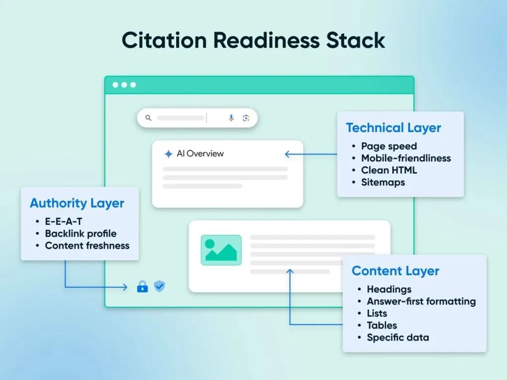 要在这种“零点击”搜索时代生存,我们需要掌握一套全新的优化逻辑——我们称之为 “AI 引用就绪模型”(AI Citation Readiness Model)。